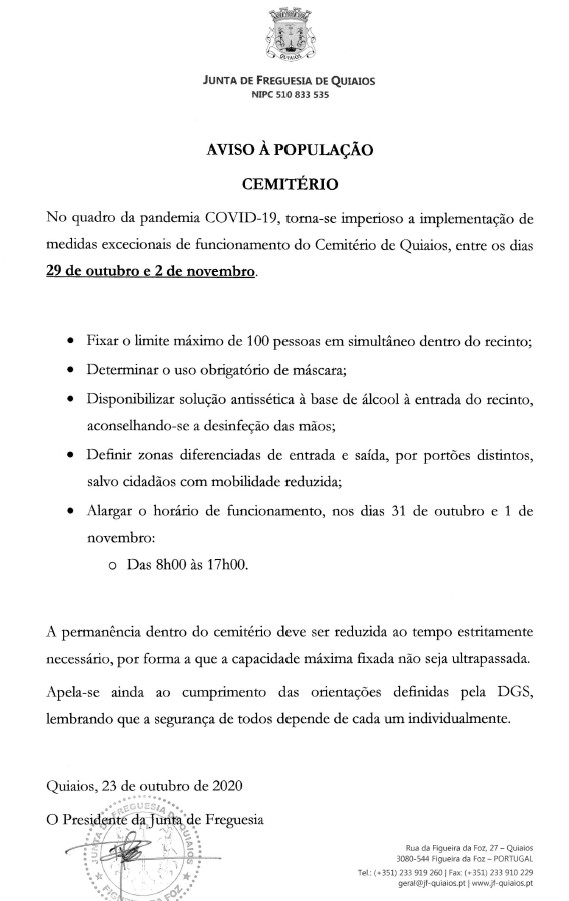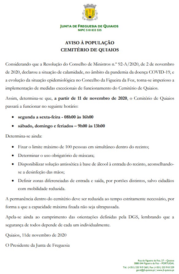 Aviso à População - Cemitério de Quiaios