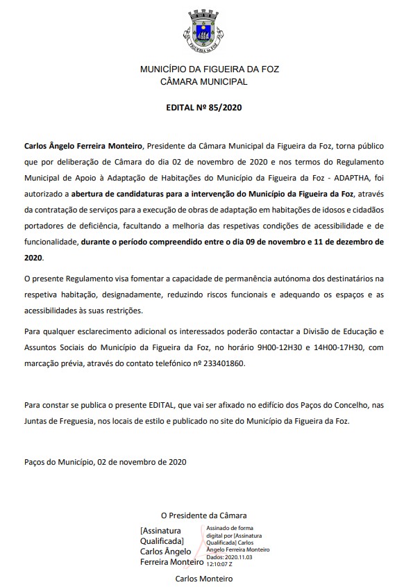 Edital n.º 85/2020 - Apoio à Adaptação de Habitações do Município da...